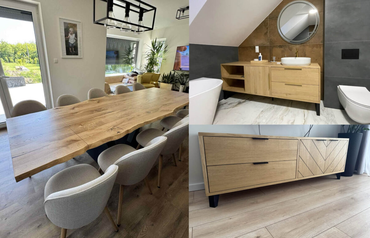 W ofercie DeerGreen znajdują się również meble drewniane na zamówienie – stoły, komody, biurka, ławy oraz inne elementy wyposażenia wnętrz. Tworzymy meble dopasowane do konkretnej przestrzeni, stylu i funkcji, bez kompromisów jakościowych. Naturalne drewno, staranne wykończenie i dbałość o detale sprawiają, że nasze meble są nie tylko praktyczne, ale także ponadczasowe.