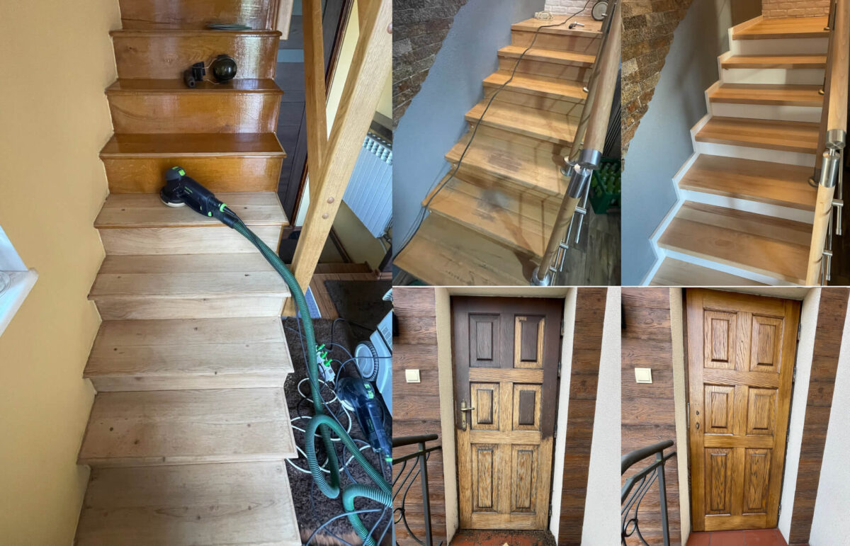 Uzupełnieniem oferty jest renowacja elementów drewnianych, w szczególności renowacja schodów oraz drzwi drewnianych. Przywracamy im estetykę, świeżość i funkcjonalność, często całkowicie zmieniając charakter wnętrza bez konieczności wymiany całych konstrukcji. To rozwiązanie ekonomiczne, ekologiczne i niezwykle efektowne wizualnie.